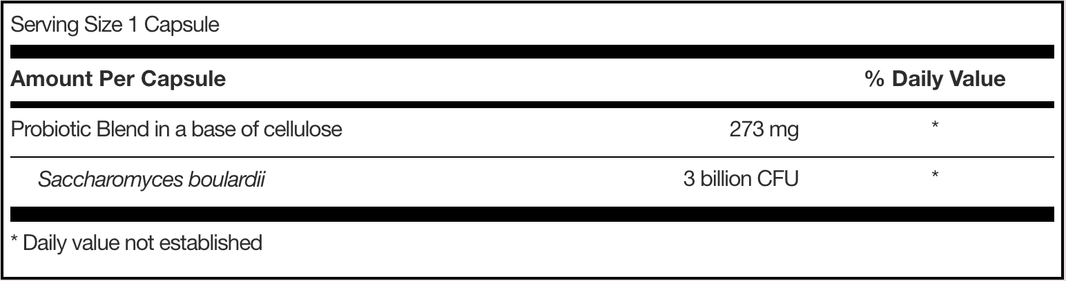 Saccharomyces boulardii is a non-pathogenic, transient yeast long used to support normal bowel transit time.† It is a hardy, acid-resistant, temperature tolerant microorganism that is not affected by antibacterial agents. S. boulardii is genetically and functionally distinct from brewer’s yeast (S. cerevisiae) and different from pathogenic Candida species.