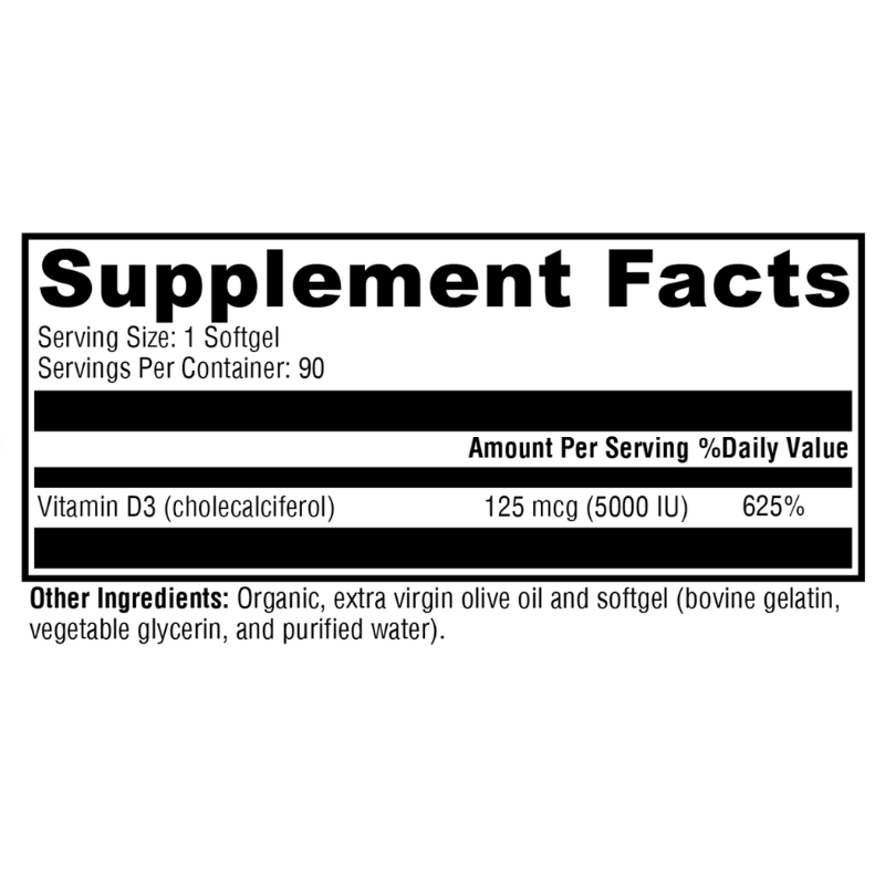 D3 5000 contains vitamin D3 (cholecalciferol) in convenient softgels. Vitamin D3 is the bioidentical form of vitamin D synthesized in the body from cholesterol, following activation by the UV rays in sunlight. This form is excellent for maintaining healthy levels of vitamin D in the body. Mounting evidence suggests roles for vitamin D not only in bone health, but also in supporting immune, neurological, musculoskeletal, cellular, and cardiovascular health.